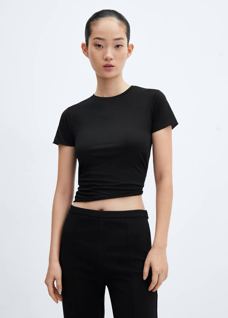 Fluid fabric. Straight design. Round neck. Short sleeves. Office looks