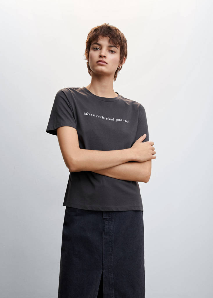 Printed cotton shirtPrice historyInitial price struck through [€ 8,99 ]€ 8,99Current price [€ 4,99 ]€ 4,99-44 %Select a colourCharcoalSelect your sizeXXSNot available. I want it!XSNot available. I want it!SNot available. I want it!MNot available. I want it!LNot available. I want it!XLNot available. I want it!XXLNot available. I want it!1XLNot available. I want it!2XLNot available. I want it!3XLNot available. I want it!4XLNot available. I want it!DimensionsNotify me100% cotton fabric. Knitted fabric. Message printed on the front. Straight design. Rounded neck. Short sleeve. Plus Size AvailableDetails, composition and careStore availability