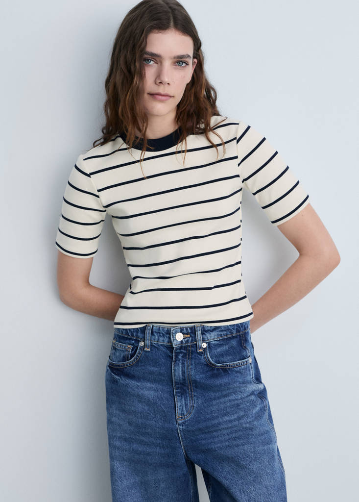Striped cotton T-shirtPrice historyInitial price struck through [€ 22,99 ]€ 22,99Second price struck through [€ 14,99 ]€ 14,99Current price [€ 10,99 ]€ 10,99-52 %Select a colourEcruThe model is wearing size S and is 177cm tall.Select your sizeXXSNot available. I want it!XSNot available. I want it!SNot available. I want it!MNot available. I want it!LNot available. I want it!XLNot available. I want it!XXLNot available. I want it!DimensionsNotify me100% cotton fabric. Straight design. Standard design. Striped print. Round neck. Contrast trim. Short sleeves. No FasteningDetails, composition and careStore availability