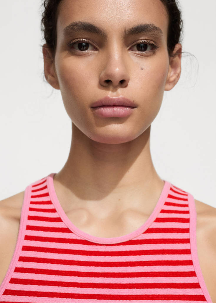 Striped knit topPrice historyInitial price struck through [€ 15,99 ]€ 15,99Second price struck through [€ 10,99 ]€ 10,99Current price [€ 3,49 ]€ 3,49-78 %Select a colourRedSelect your sizeXSNot available. I want it!SNot available. I want it!MNot available. I want it!LNot available. I want it!XLNot available. I want it!Notify meKnit fabric. Crop design. Striped print. Round neck. Sleeveless. Festival Season. Fitted designDetails, composition and careStore availability