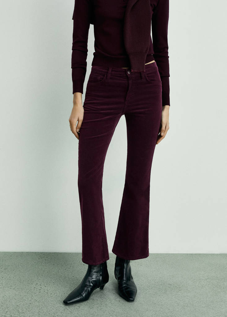 Sienna flared cropped corduroy trousersPrice historyInitial price struck through [€ 39,99 ]€ 39,99Current price [€ 26,99 ]€ 26,99-33 %Select a colourWineThe model is wearing size 36 and is 179cm tall.Select your size323436Not available. I want it!38Not available. I want it!40Not available. I want it!42Not available. I want it!44Not available. I want it!46Not available. I want it!DimensionsAddCorduroy fabric. Stretch fabric. Flared design. Flare design. High waist. Belt loops. Five pockets. Zip and button fastening. Inside length 65 cmDetails, composition and careStore availability