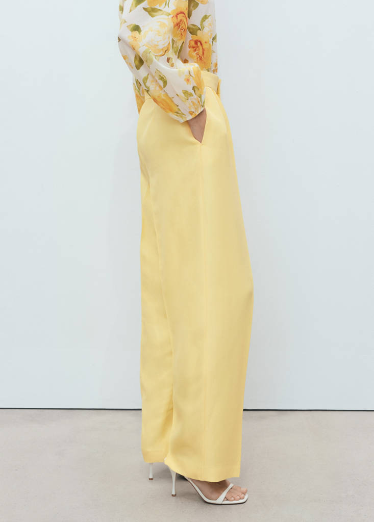 Linen mix. Long design. Straight design. Mid-rise. Dart detail. Two side pockets. Concealed button, hook and zip front closure with placket. Inner lining