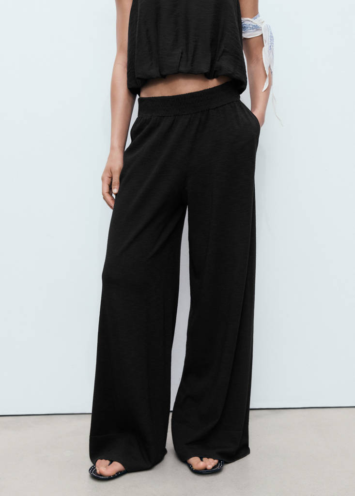 Fine knit fabric. Long design. Straight design. Elasticated waistband. Two side pockets. No Fastening. Total look