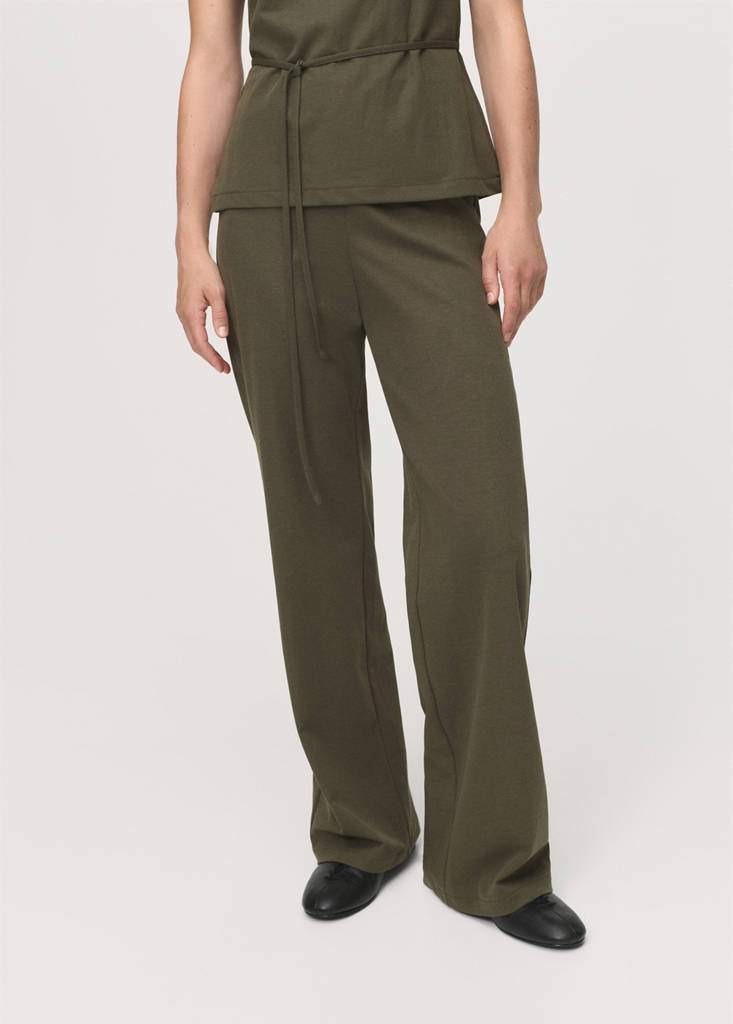 Cotton blend fabric. Long design. Straight design. Elasticated waistband. No Fastening. Total look