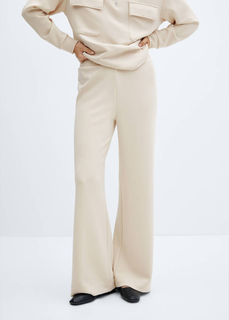 Fluid fabric. Wide-leg design. Long design. High waist. No Fastening. Elasticated waistband. Available Plus. Total look. Office looks