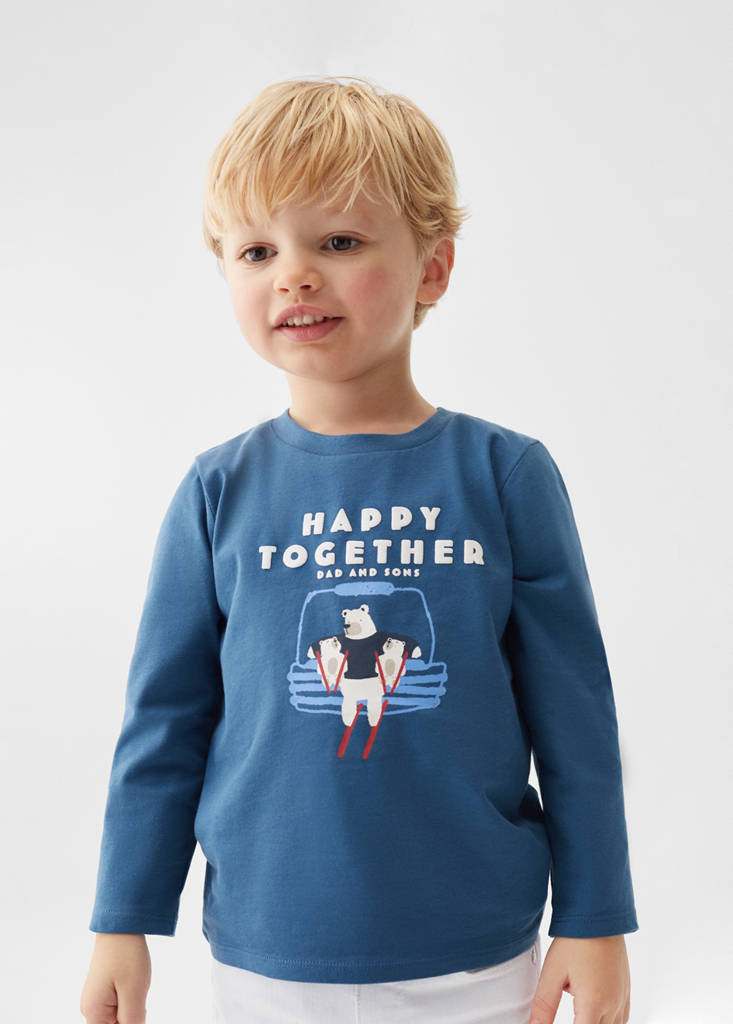 Tissu en coton mélangé. Droit. Imprimé. Col rond. Manches longues