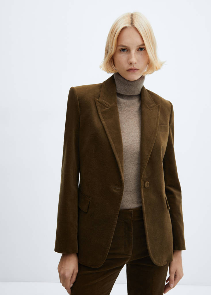 100 % coton, tissu velveton, coupe longue, coupe cintrée, col en V avec rabat, revers crantés, manches longues avec poignets boutonnés, deux poches passepoilées et à rabat sur le devant, poche passepoilée sur la poitrine, fermeture à bouton sur le devant, doublure, total look.