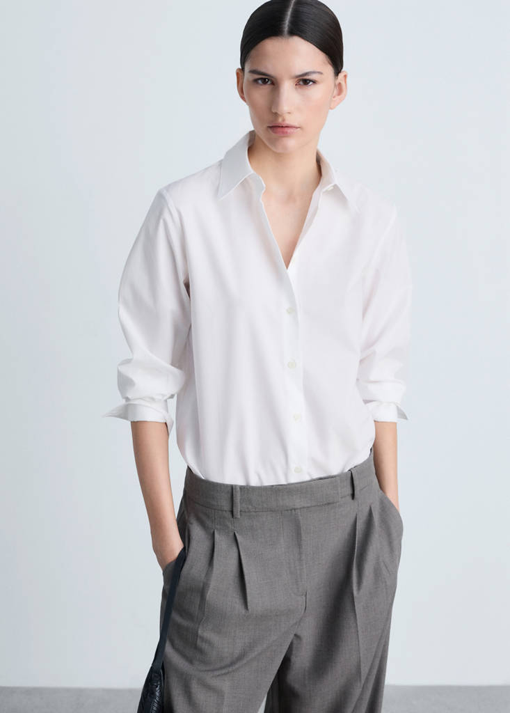 Tissu en mélange de coton et lyocell. Coupe droite. Col chemise. Manches longues et poignets boutonnés. Fermeture à boutons sur le devant. Disponible en grande taille. Looks de bureau. Tissu popeline de coton