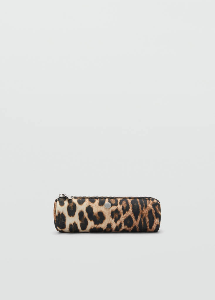 Tissu en nylon. Taille moyenne. Imprimé léopard. Fermeture à glissière. Badge décoratif. Doublure