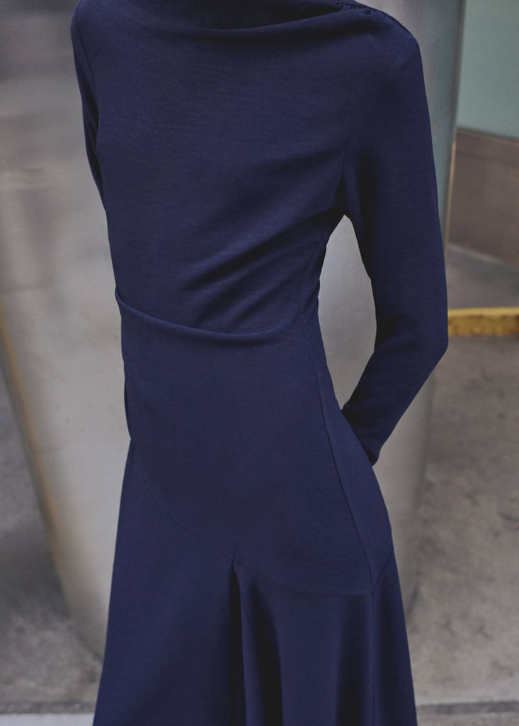 Tissu léger. Design évasé. Coupe midi. Coupe asymétrique. Col bateau. Manche longue. Taille froncée. Ourlet asymétrique. Fermeture zip à l'arrière. Boutons décoratifs sur l’épaule. Sans doublure intérieure