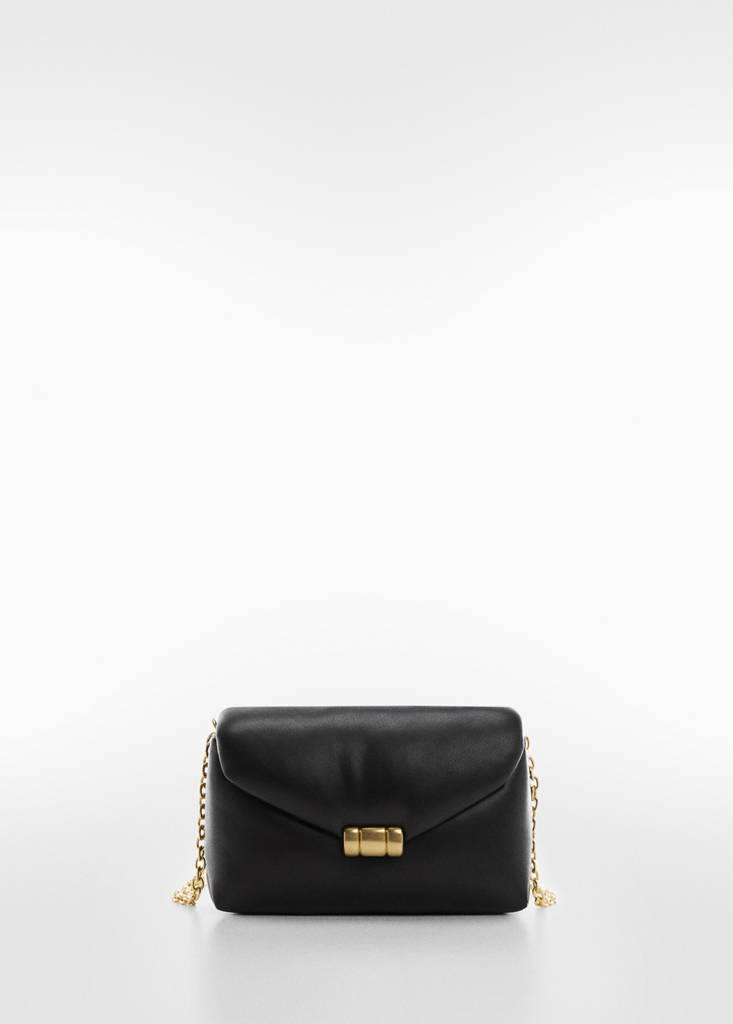 Petite taille. Bandoulière. Design matelassé. Anse longue en chaîne. Double compartiment. Fermeture à rabat avec bouton magnétique. Doublure