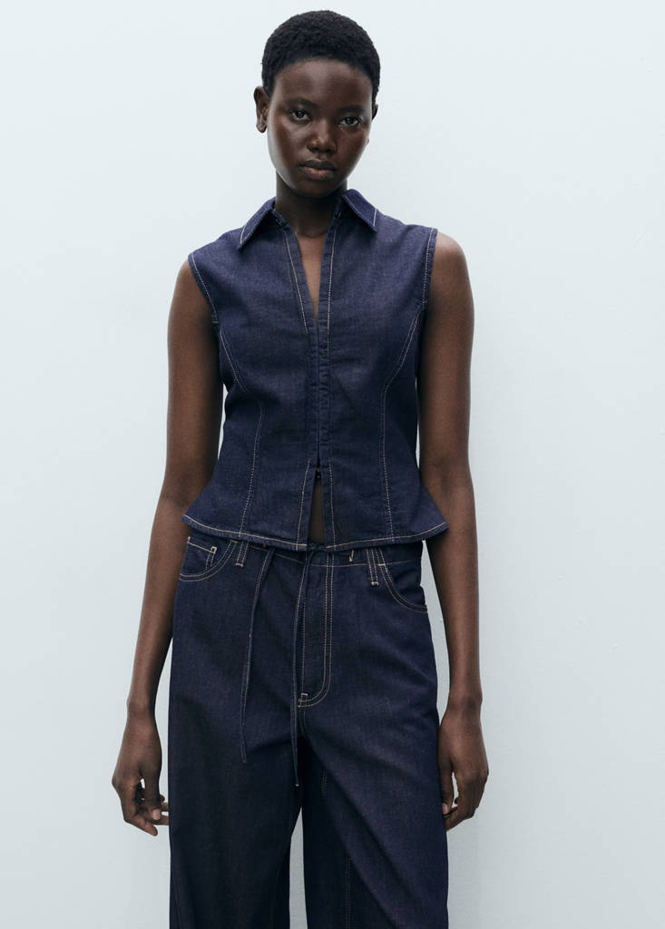 Top denim cintré