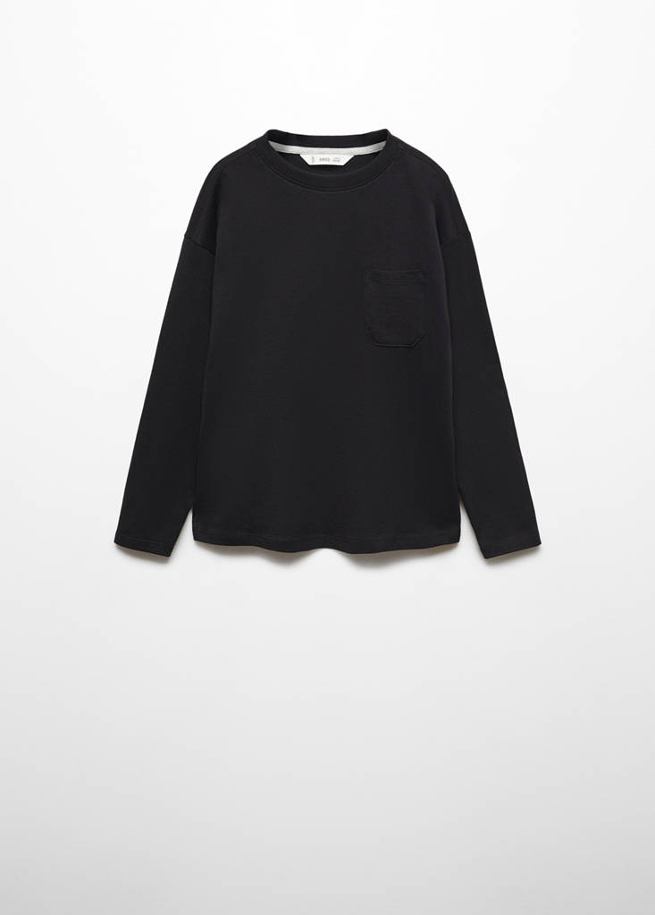 T-shirt coton manches longuesPrix initial barré [6,99 € ]6,99 €Prix actuel [4,99 € ]4,99 €Choisissez une couleurNoirChoisissez votre taille5-6 ans (116cm)Non disponible. Je le veux !7-8 ans (128cm)Non disponible. Je le veux !9-10 ans (140cm)Non disponible. Je le veux !11-12 ans (152cm)Non disponible. Je le veux !13-14 ans (164cm)Non disponible. Je le veux !MesuresAlertez-moi. Collection Essentiels. 100% coton. Design long. Poche sur la poitrine. Tissu léger. Col rond. Coupe droite. Coupe standard. Manche longueDétails, composition et entretienDisponibilité en boutique
