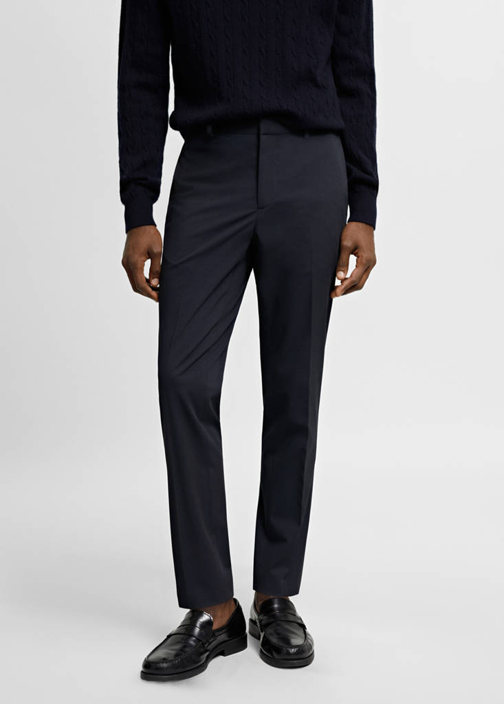 Super slim-fit. Fermeture Éclair avec agrafe et bouton dissimulés. Passants de ceinture. Deux poches latérales. Poche ticket. Deux poches passepoilées à l'arrière. Collection tailleur