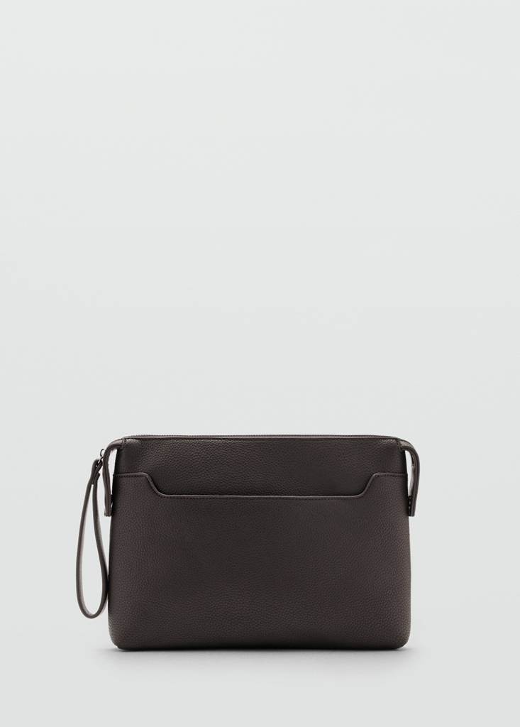Sac porté main de style pochette. Compartiment principal zippé. Effet grainé. Poche intérieure. Dragonne