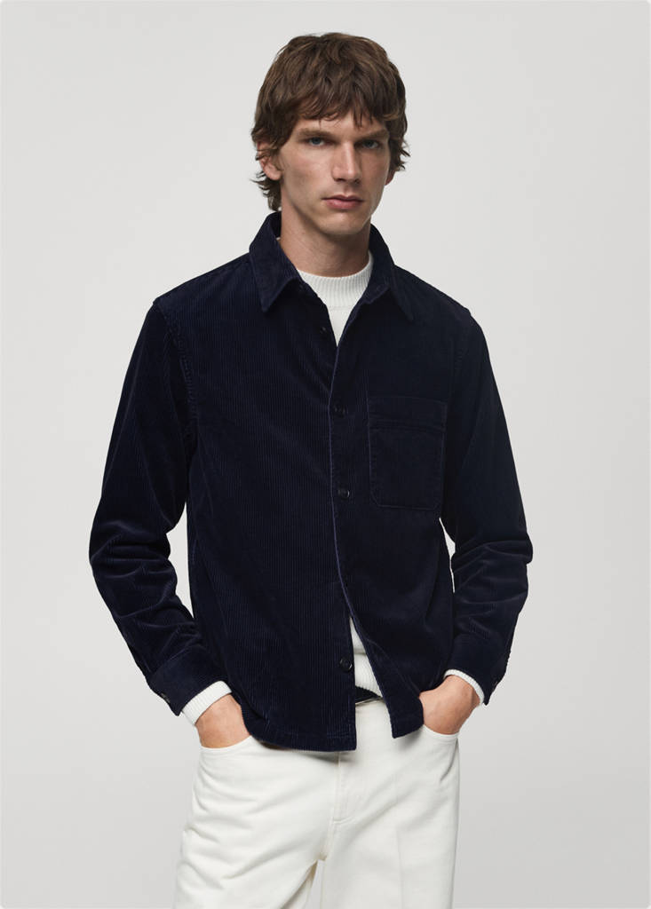 La couleur bleu marine foncé est une exclusivité en ligne. Coupe regular. Tissu en coton durable. Tissu en velours côtelé. Col classique. Manche longue. Poche plaquée sur la poitrine. Fermeture à boutons