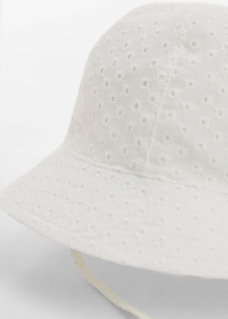 100% coton. Forme bob. Broderie florale. Cordon réglable