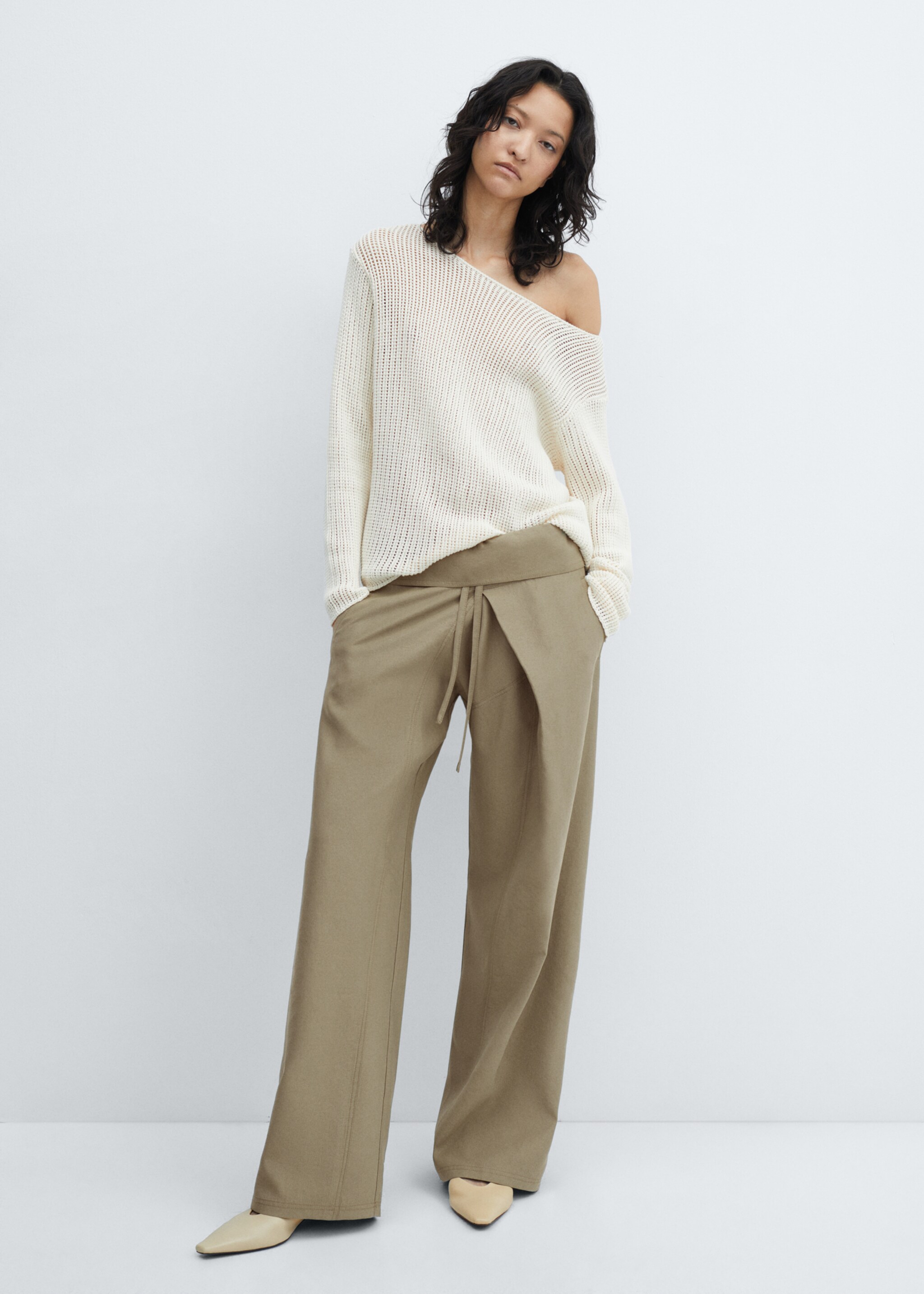 The cheap wide leg pants are a perfect choice for those looking for style and comfort in a single garment. At Mango Outlet, our collection offers a wide variety of promotional options that suit different occasions and personal styles. From cheap suit pants to casual cheap designs with elastic waistbands, these cheap pants are ideal for creating versatile and sophisticated looks. The women's wide leg pants stand out for their fluid design and their ability to provide a comfortable fit without sacrificing style. You can find options in affordable fabrics like linen and cotton, perfect for keeping you cool during the warmer days. Additionally, details like waist ties, pleats, and side pockets add a touch of elegance to each design. For those who prefer a more classic style, women's straight pants are also available in our collection. This selection on sale is perfect for everyday office wear or for more formal occasions. The cheap suit-style pants, available in colors like black and beige, are ideal for work meetings or events where elegance is key. On the other hand, the cheap designs with elastic waistbands and fluid fabrics are perfect for a relaxed and comfortable look during a stroll through the city. Moreover, our offer includes affordable women's pants in various sizes, including plus size women's pants, ensuring that everyone finds their perfect fit. The benefits of wearing promotional wide leg pants are numerous. Their wide cut provides freedom of movement, while their streamlined design helps to visually elongate the figure. Additionally, they are extremely versatile; you can pair them with elegant blouses on sale for an office look or with affordable casual t-shirts for a more laid-back style. If you're looking for a more formal option, we also offer dress pants on sale that perfectly complement any elegant outfit. Discover the collection of women's wide leg pants and transform your style with pieces that combine fashion and functionality at prices you love.