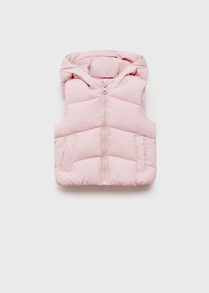 Quilted gilet with hoodPrice historyInitial price struck through [£ 25.99 ]£ 25.99Second price struck through [£ 19.99 ]£ 19.99Current price [£ 17.99 ]£ 17.99-31%Select a colourPinkSmall garment - Choose one size up from the usualSelect your size9-18 months (86cm)Last few items!18-36 months (96cm)Not available. I want it!3-4 years (104cm)Not available. I want it!4-5 years (110cm)Not available. I want it!5-6 years (116cm)Not available. I want it!AddStraight design. Hood. Two side pockets. Label for personal data. Zip closureDetails, composition and careStore availability