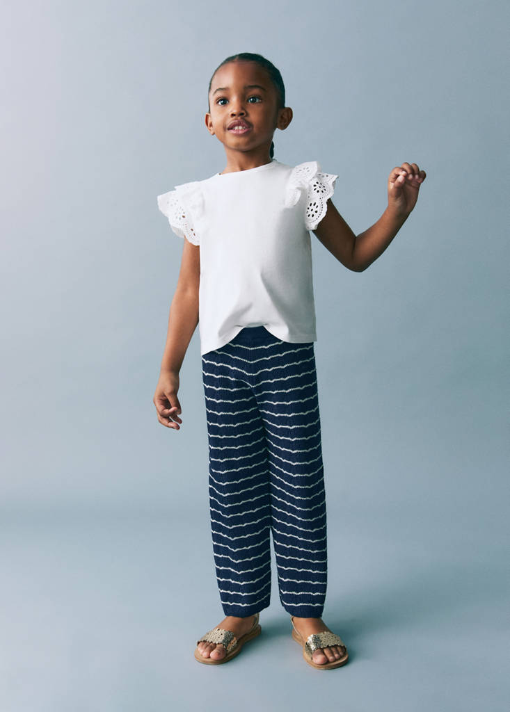 Cotton fabric. Open-knit fabric. Striped design. Straight design. Elasticated waistband. Total look