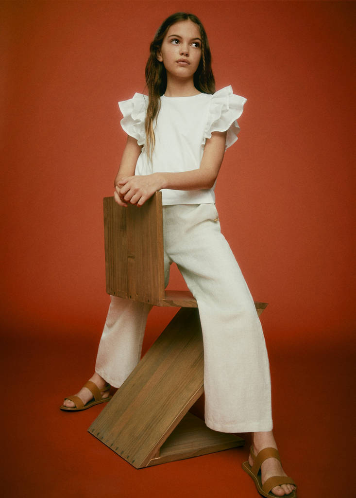Ruffle T-shirtPrice historyInitial price struck through [£ 14.99 ]£ 14.99Current price [£ 11.49 ]£ 11.49-23%Select a colourOff WhiteSelect your size5-6 years (116cm)Not available. I want it!7-8 years (128cm)Not available. I want it!9-10 years (140cm)Not available. I want it!11-12 years (152cm)Not available. I want it!13-14 years (164cm)Not available. I want it!DimensionsNotify meCropped design. Short design. Rounded neck. Short sleeve. Ruffles on the sleevesDetails, composition and careStore availability