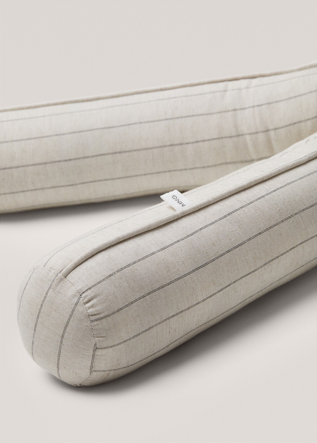 Size: 60x08x08cm. Linen and cotton mix. Wind protector. Striped design. Pillow shape. Filling included.
