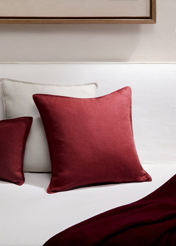 100% linen fabric. Plain fabric. Linen becomes softer over time and is notable for its flexibility; slightly creased but there's no need to iron it. Zip fastening. Stitching detail. Filling not included. Plain colors. Size: 45x45cm