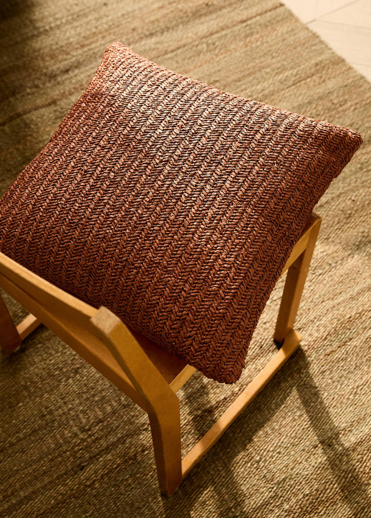 Size: 45x45cm. 100% paper. Raffia effect. Natural fibers. Zip closure. Textured design. Herringbone knit. Hand wash recommended. Available in different colours. Available in two sizes