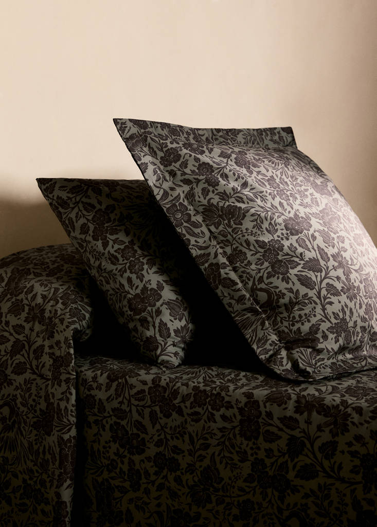 Two cotton percale two-tone floral-print pillowcases 50x75 cm