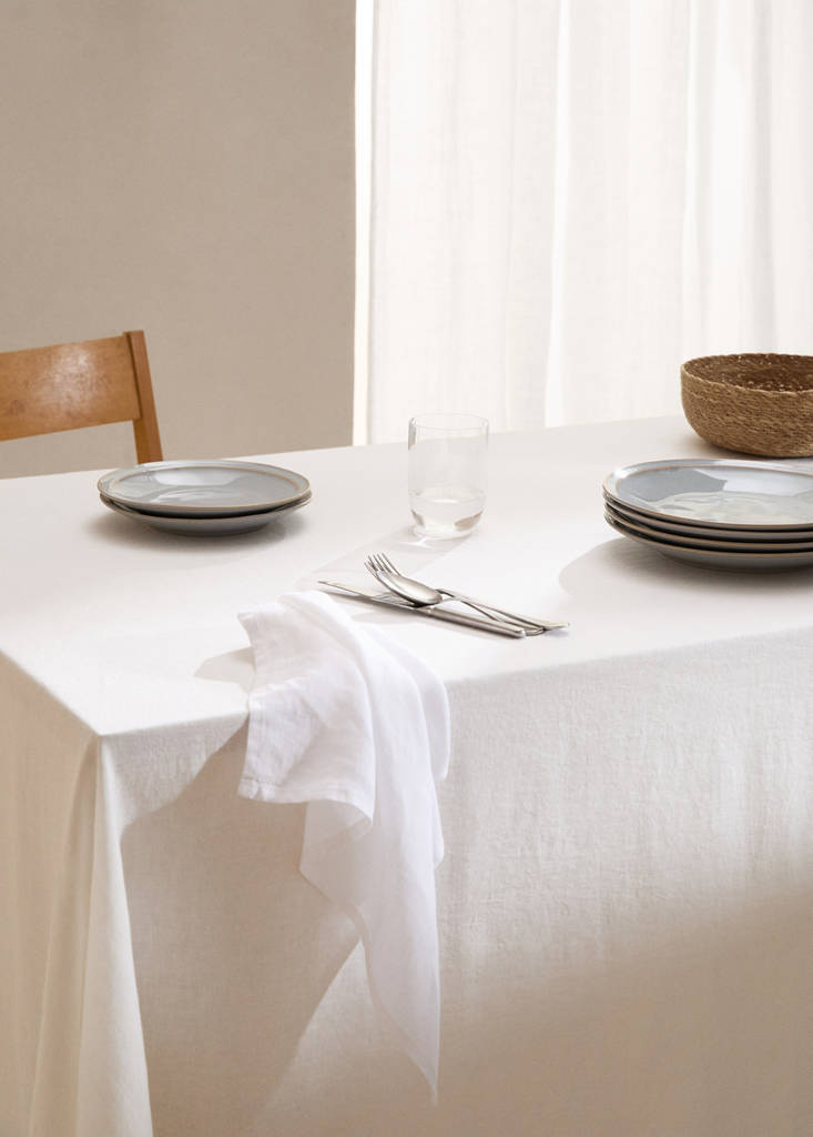 Size: 170x170 cm. 100% Linen. Tablecloth and napkins available. Exceptional durability linen thanks to the quality of the natural fiber. Furthermore, its texture and casual air, makes linen as a timeless and versatile fabric. The best fabrics to set the table and share mealtime with your loved ones. Seats 4 to 6