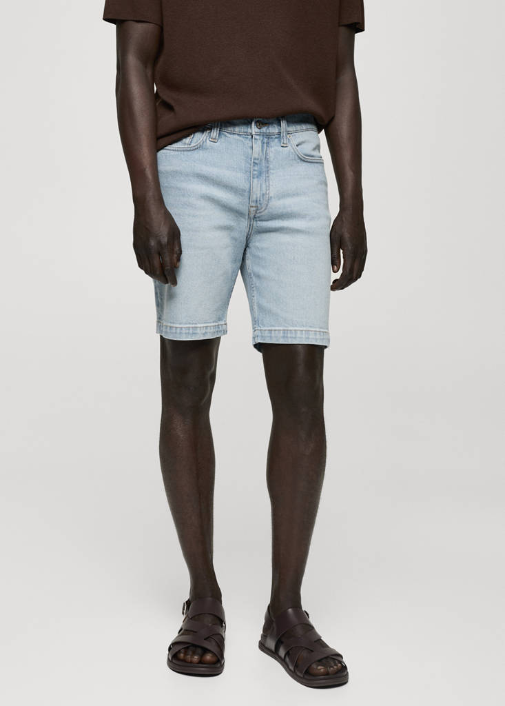 Regular fit. Denim-style cotton fabric. Washed-effect colour. Zip and button fastening. Belt loops. Two front pockets. Coin pocket. Two patch pockets at the back. Straight hem
