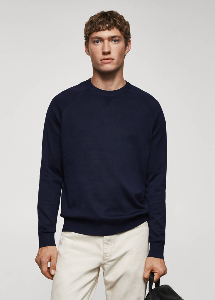 Basics Collection. Regular fit. Round neck. Long raglan sleeve. Elastic ribbed endings. Straight hem. The dark grey model is an online exclusive. No Fastening. Straight design. Fine knit fabric. Standard design. Long sleeves