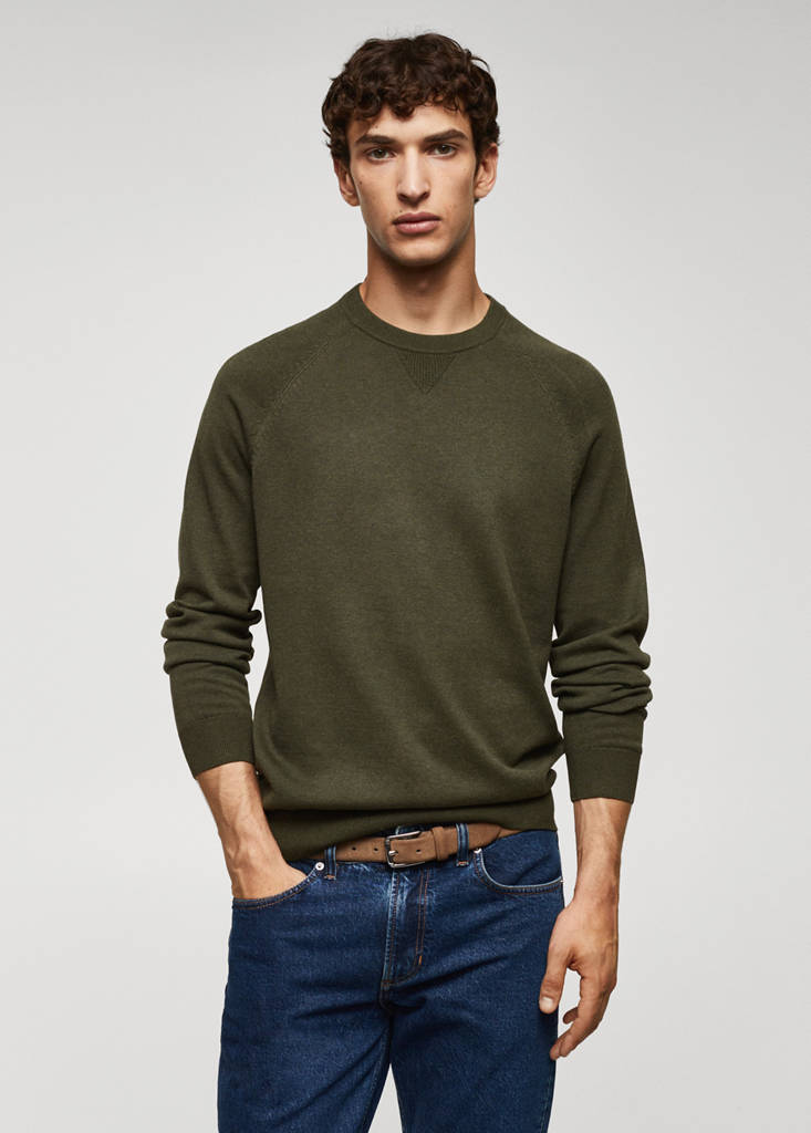 Basics Collection. Regular fit. Round neck. Long raglan sleeve. Elastic ribbed endings. Straight hem. The dark grey model is an online exclusive. No Fastening. Straight design. Fine knit fabric. Standard design. Long sleeves