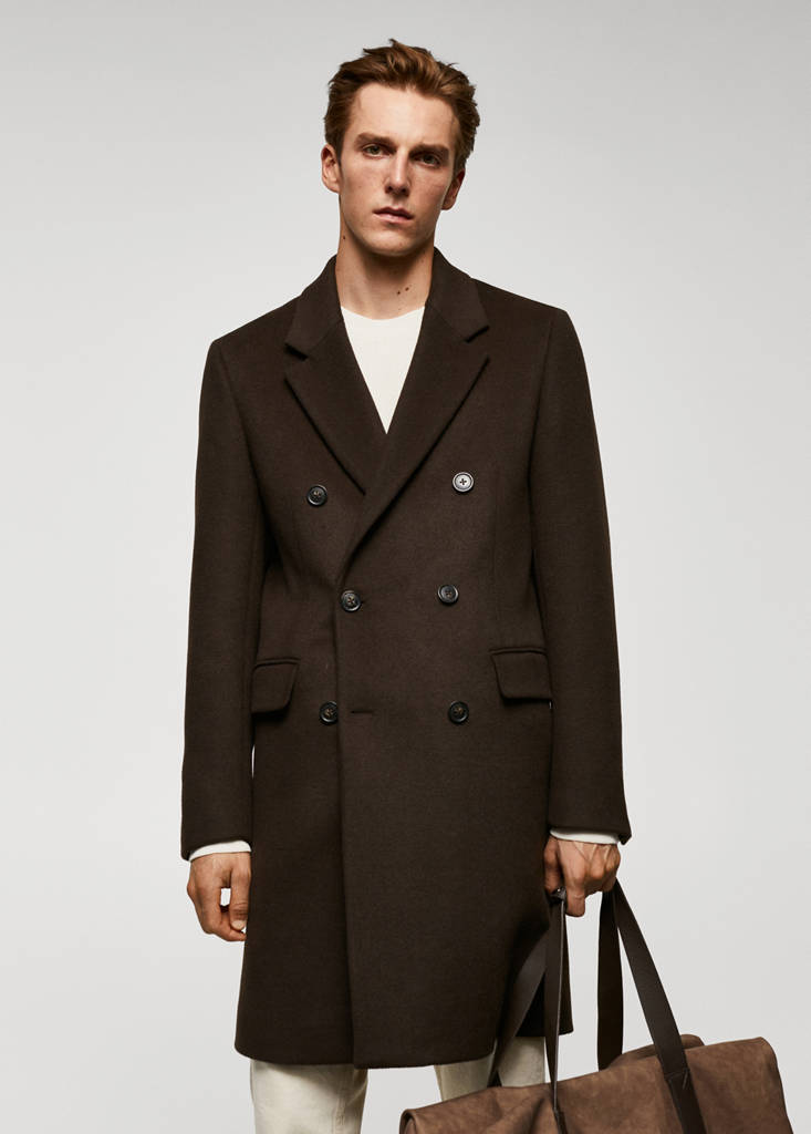 ESSENTIALS: Made to last. Recycled wool mix fabric. Regular fit. Long design. Notched lapel collar. Design with double-breasted front closure. Inner counterbutton for better grip of the outer button. Long sleeves with buttoned cuffs. Two front flap pockets. Straight hem. Back vent at the hem. Inner lining. Interior pocket