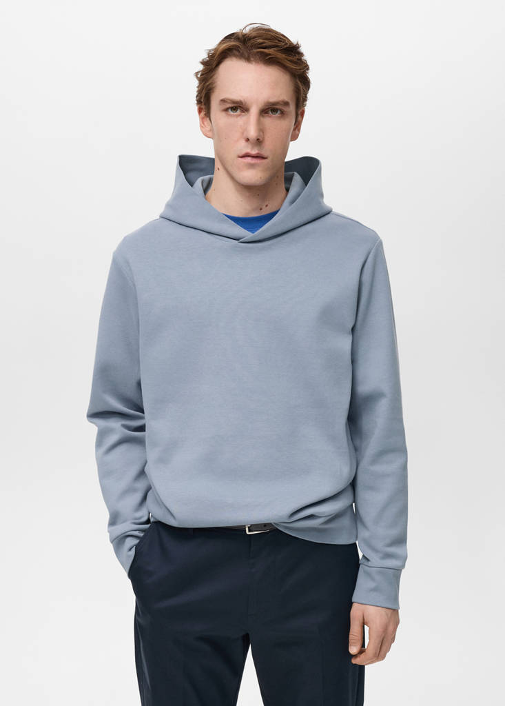 ESSENTIALS: Made to last. Cotton blend fabric. Regular fit. With hood. Ribbed cuffs and hem. Straight hem. The light blue colour is an online exclusive