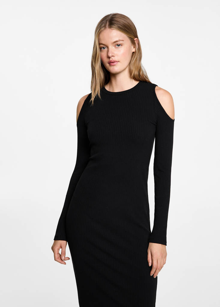 Cotton fabric. Straight design. Long design. Fitted design. Round neck. Cut-out details on the shoulder. Long sleeves. No Fastening