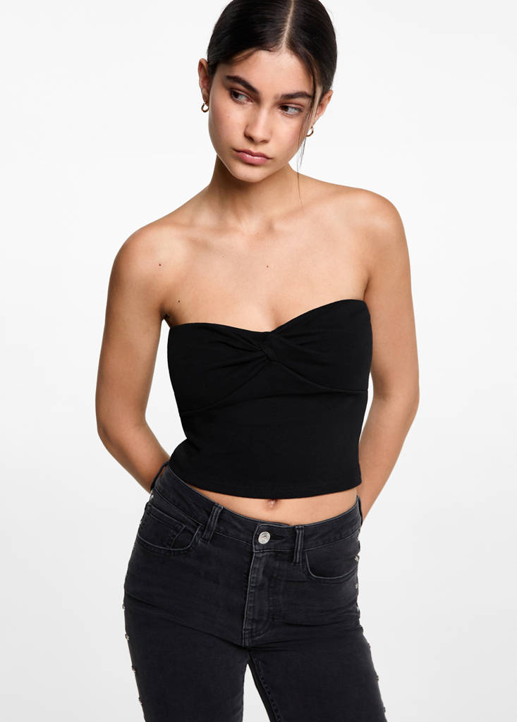 Knot crop topPrice historyInitial price struck through [£ 12.99 ]£ 12.99Second price struck through [£ 9.99 ]£ 9.99Current price [£ 2.49 ]£ 2.49-81%Select a colourBlackSelect your sizeSNot available. I want it!MNot available. I want it!LAddFabric with cotton. Straight design. Knot detail. Crop style. Standard design. Strapless. Sleeveless. Slim fit. Lightweight fabricDetails, composition and careStore availability