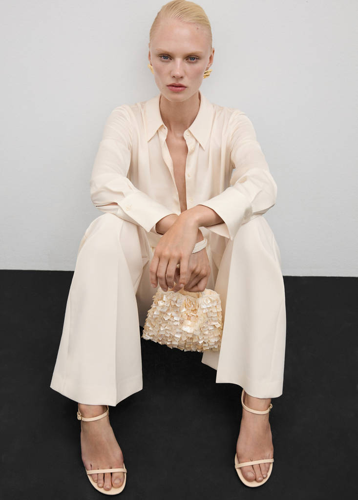 Small size. Pearl design. Double handle. Handle. Inside magnet fastening. Inner lining