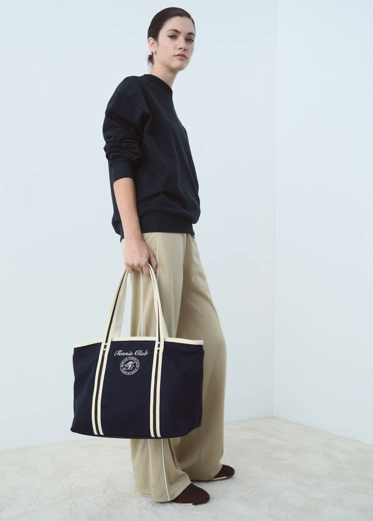 100% cotton fabric. Shopper style. Double handle. Embroidered message. Zip closure. Interior pocket. Godo Collection