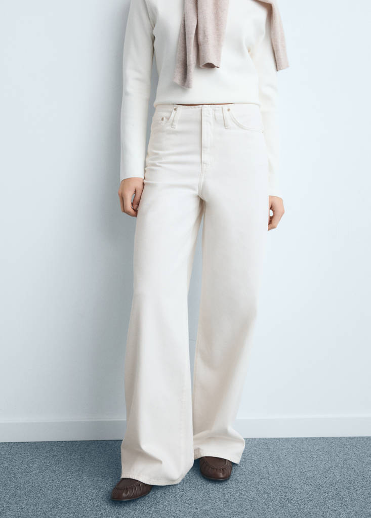 Top seller!Low-rise wideleg jeansPrice historyInitial price struck through [£ 49.99 ]£ 49.99Current price [£ 34.99 ]£ 34.99-30%Select a colourOff WhiteThe model is wearing size 8 (EUR 36) and is 5'11" tall.Select your size4 (EUR 32)6 (EUR 34)8 (EUR 36)10 (EUR 38)12 (EUR 40)14 (EUR 42)16 (EUR 44)Last few items!18 (EUR 46)MeasurementsAddDenim-style cotton fabric. Long design. Wide-leg design. Low waist. Belt loops. Five pockets. Concealed button, hook and zip fastening. Inner length 81,5 cmDetails, composition and careStore availability