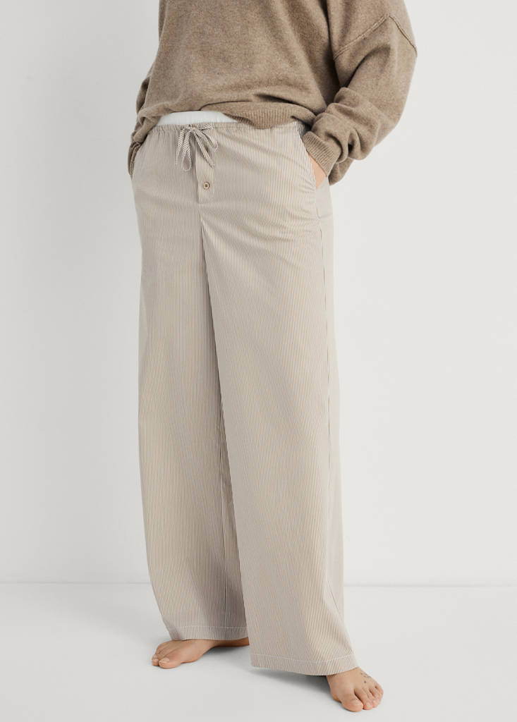 Pyjama trousers. Striped print. Straight design. Long design. White elastic waistband detail. Adjustable drawstring. Available in different colours
