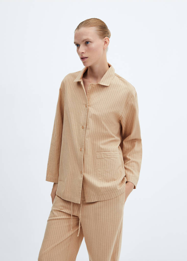 Striped pyjama shirtPrice historyInitial price struck through [£ 35.99 ]£ 35.99Current price [£ 24.99 ]£ 24.99-31%Select a colourBeigeThe model is wearing size S and is 5'10" tall.Select your sizeSNot available. I want it!MNot available. I want it!LNot available. I want it!DimensionsNotify meFlannel fabric. Long design. Straight design. Micro-stripe print. Shirt collar. Long sleeves. Patch pocket on the front. Total look. Front closure with buttonsDetails, composition and careStore availability