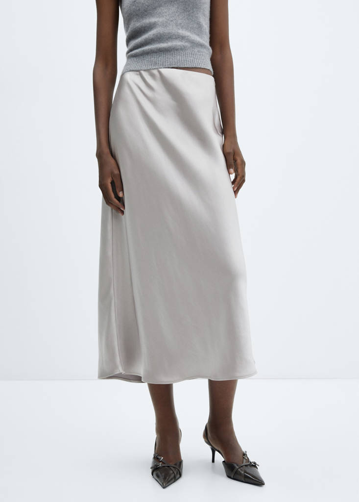 Fluid fabric. Satin fabric. Midi design. Straight design. Elastic band. Festival Season. Available Plus. Party, ceremony and communion collection. Office looks