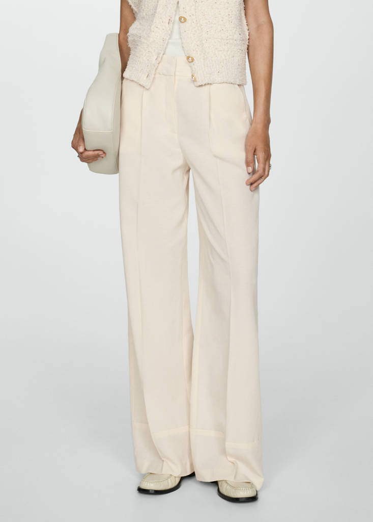 Long design. Straight design. Two side pockets. Belt loops. Concealed button, hook and zip fastening. Dart detail. Lyocell, cotton and linen-blend fabric