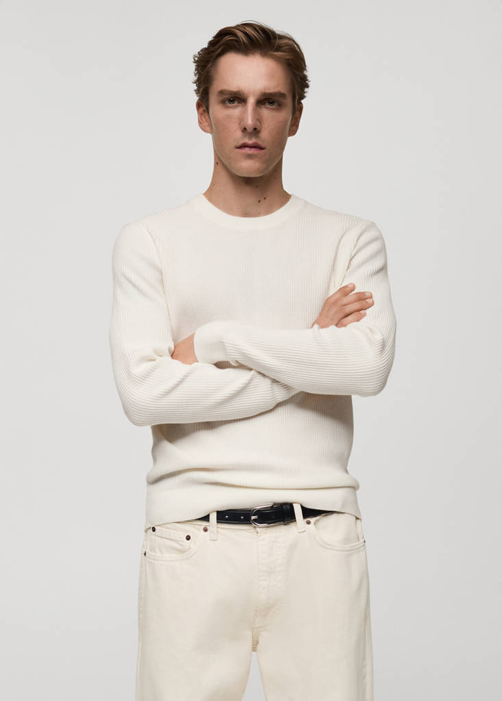 Βαμβακερό πουλόβερ με λεπτή πλέξη ριμπ