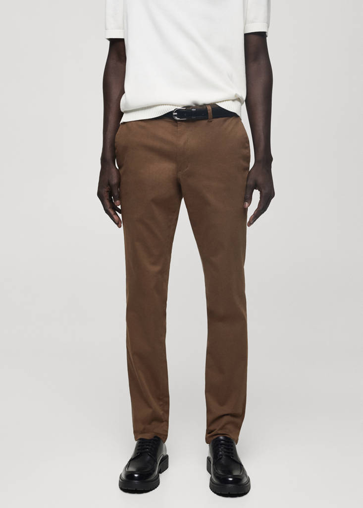 Slim fit. Στυλ chinos. Πέντε τσέπες. Ύφασμα βαμβακερό ελαστικό. Θηλιές για ζώνη. Κλείσιμο με φερμουάρ και κουμπί. Δύο πλαϊνές τσέπες. Τσέπη για νομίσματα. Δύο τσέπες με ρέλι στο πίσω μέρος
