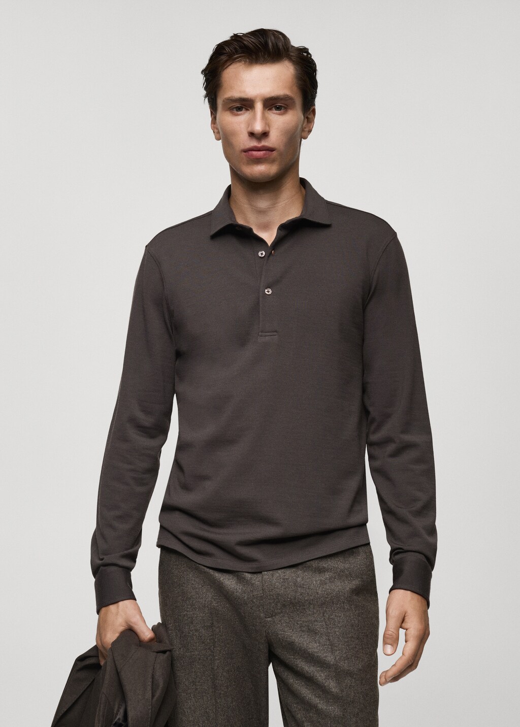 Κολεξιόν Selection. Ύφασμα απο μαλλί. Κανονική εφαρμογή. Πόλο γιακάς με κλείσιμο κουμπιών. Μακρύ μανίκι με κουμπωτές μανσέτες. Ίσιο τελείωμα με πλαϊνά ανοίγματα.
