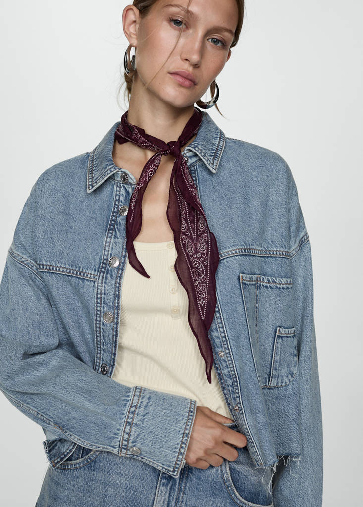 Βαμβακερό ύφασμα σε στυλ τζιν. Ίσια γραμμή. Γιακάς πουκαμίσου. Μακρύ μανίκι με κουμπωτές μανσέτες. Εξωτερική τσέπη μπροστά. Μπροστινό κλείσιμο με κουμπιά