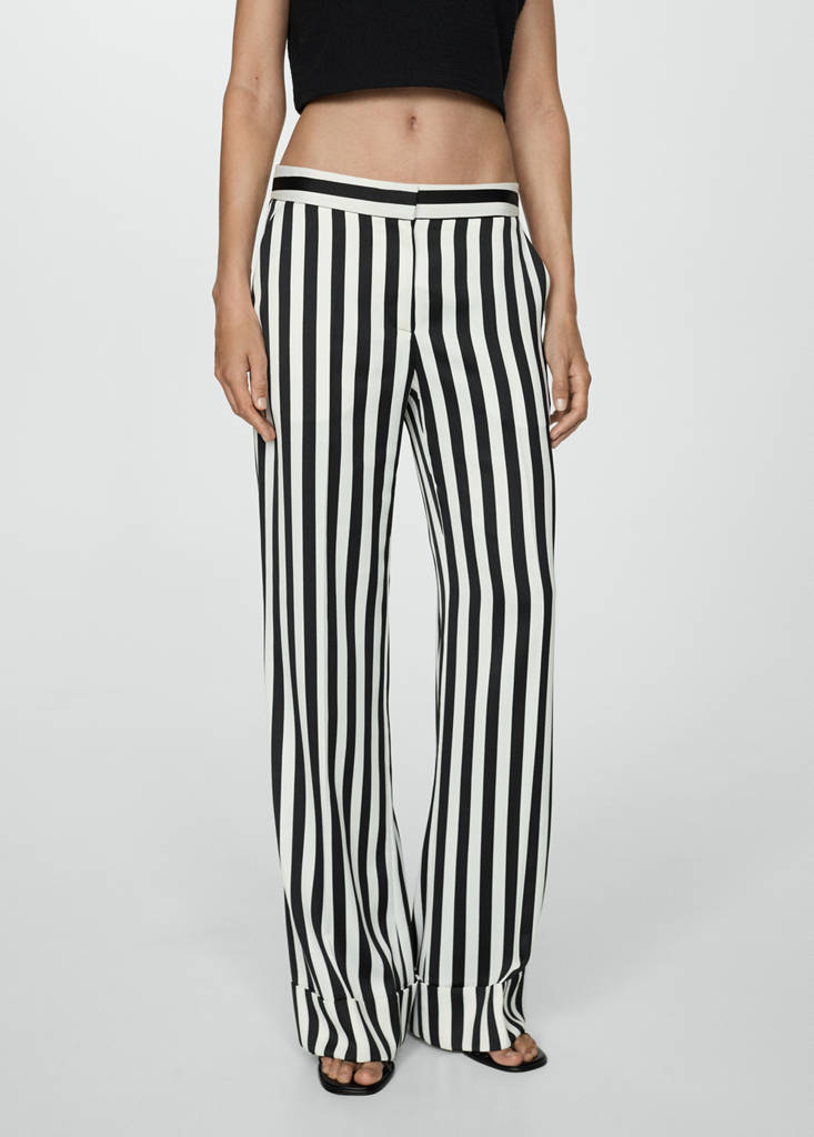 Ρευστό ύφασμα. Ίσιο σχέδιο. Μακρύς σχεδιασμός. Ριγέ σχέδιο. Δύο πλαϊνές τσέπες. Κρυφό κλείσιμο με κουμπί, κόπιτσα και φερμουάρ. Ρεβέρ στο τελείωμα. Total look