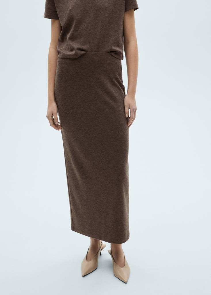Ελαστική ζώνη. Πλεκτό ύφασμα. Ελαφρύ ύφασμα. Σχέδιο πένσιλ. Μίντι σχέδιο. Μεσαίο ύψος. Μέση με ελαστικό λάστιχο. Λεπτομέρεια ανοίγματος στο πίσω μέρος. Χωρίς κλείσιμο. Χωρίς εσωτερική επένδυση. Πλεκτό ύφασμα. Μακρύς σχεδιασμός. Total look. Στενή γραμμή
